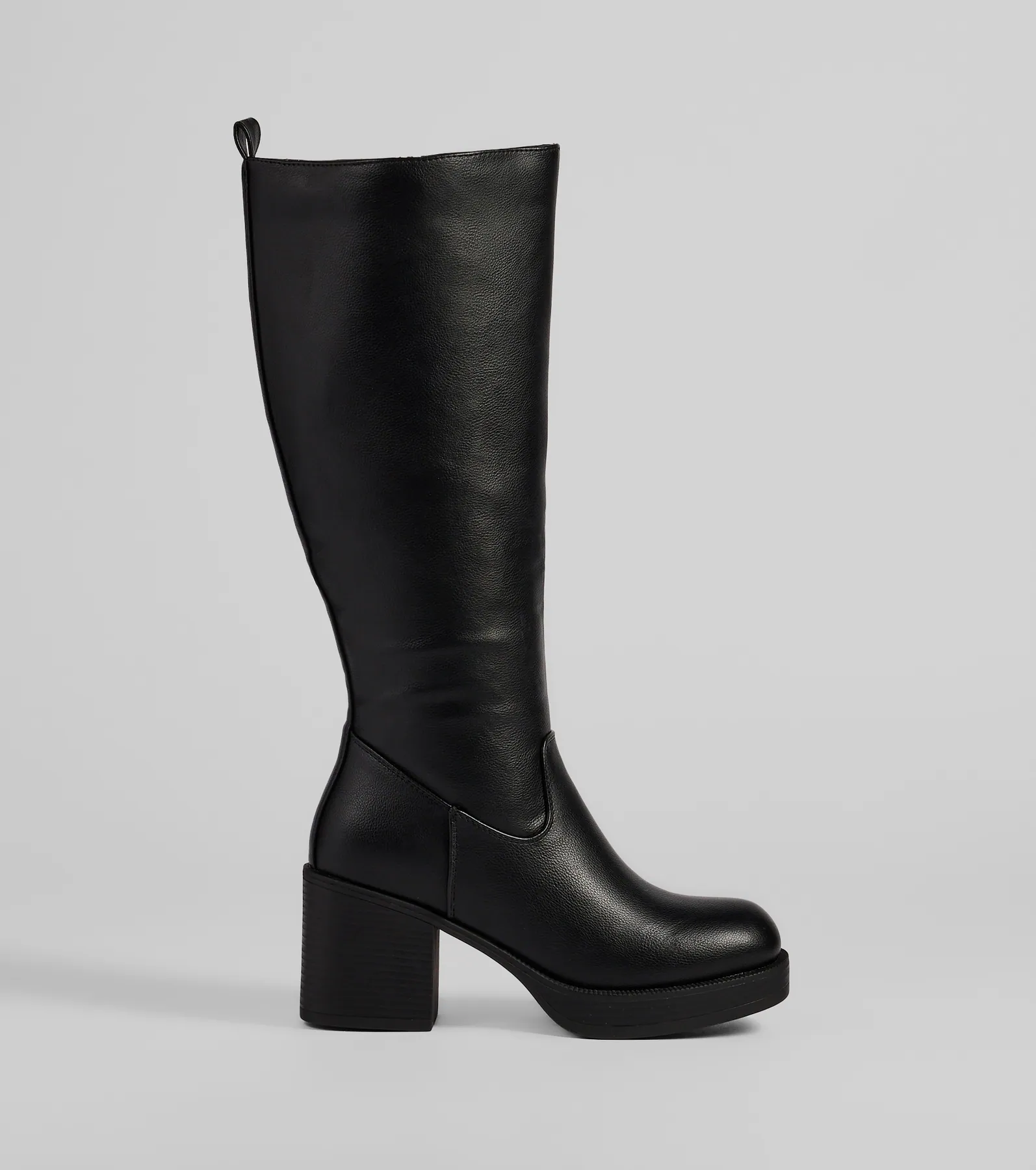 Edgy Chic Under-The-Knee Moto Platform Boots