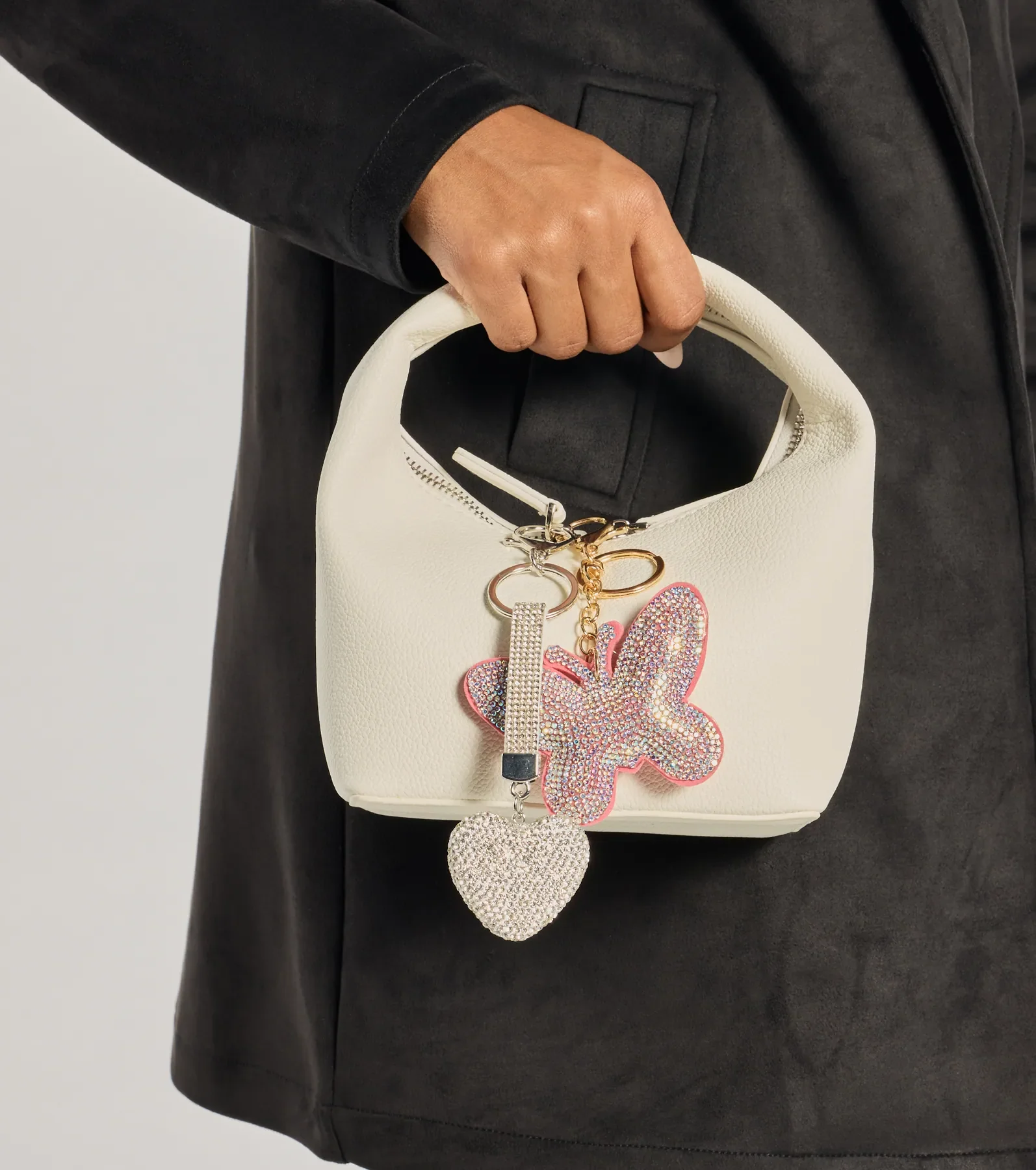 Glam Shine Rhinestone Bow And Heart Bag Charm