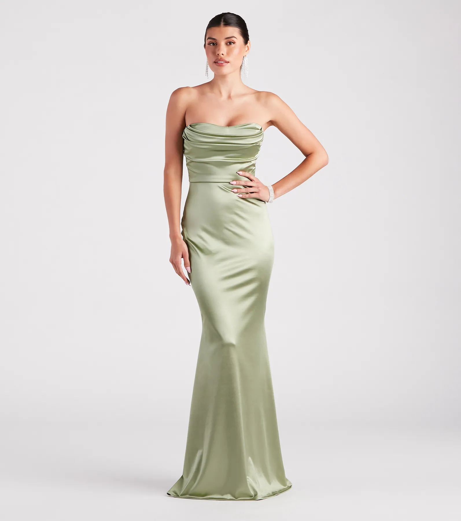 Kirsten Satin Cowl Neck High Slit Formal Dress