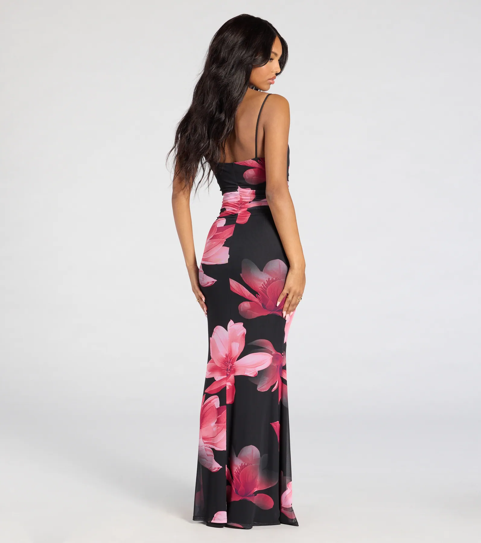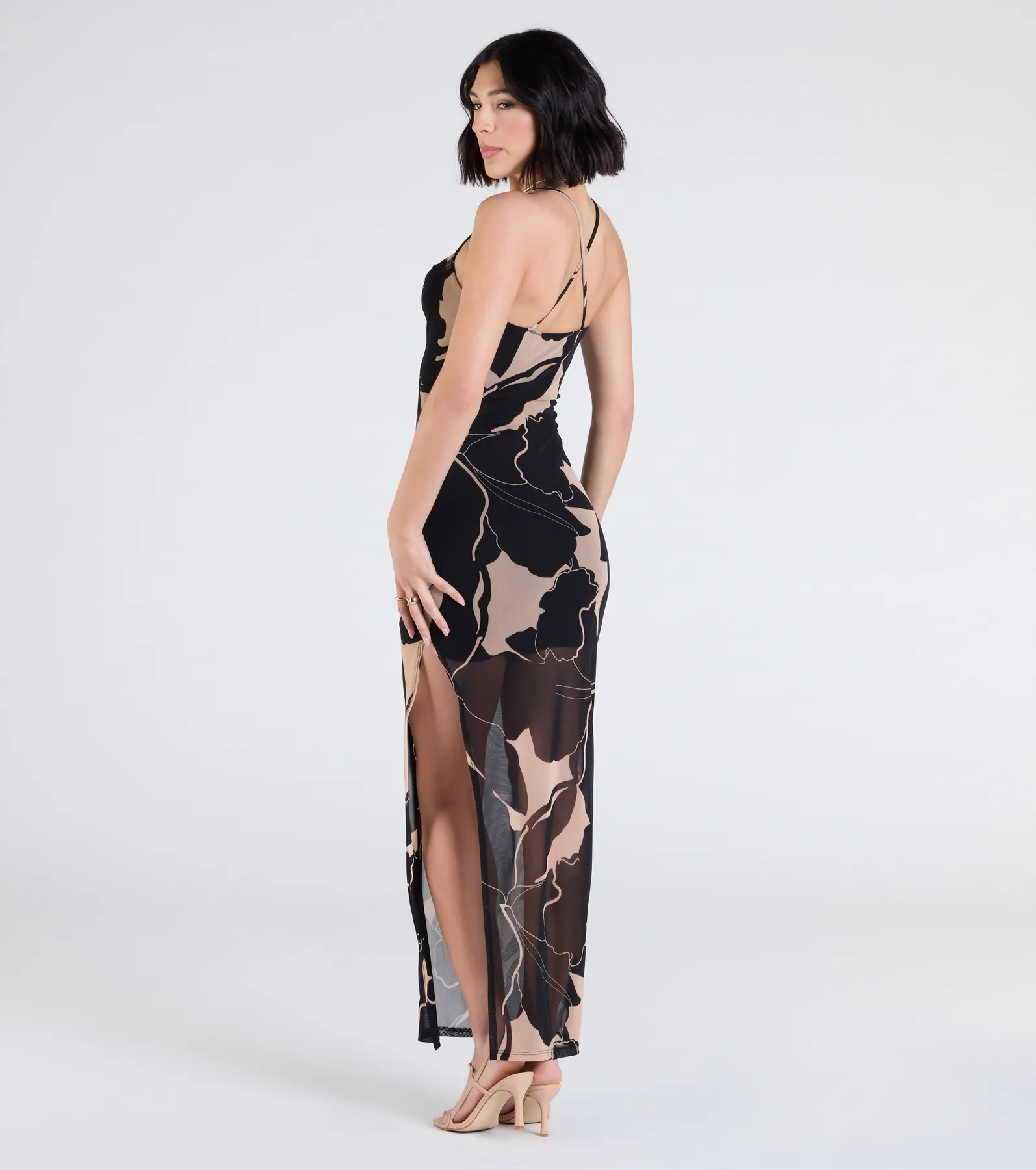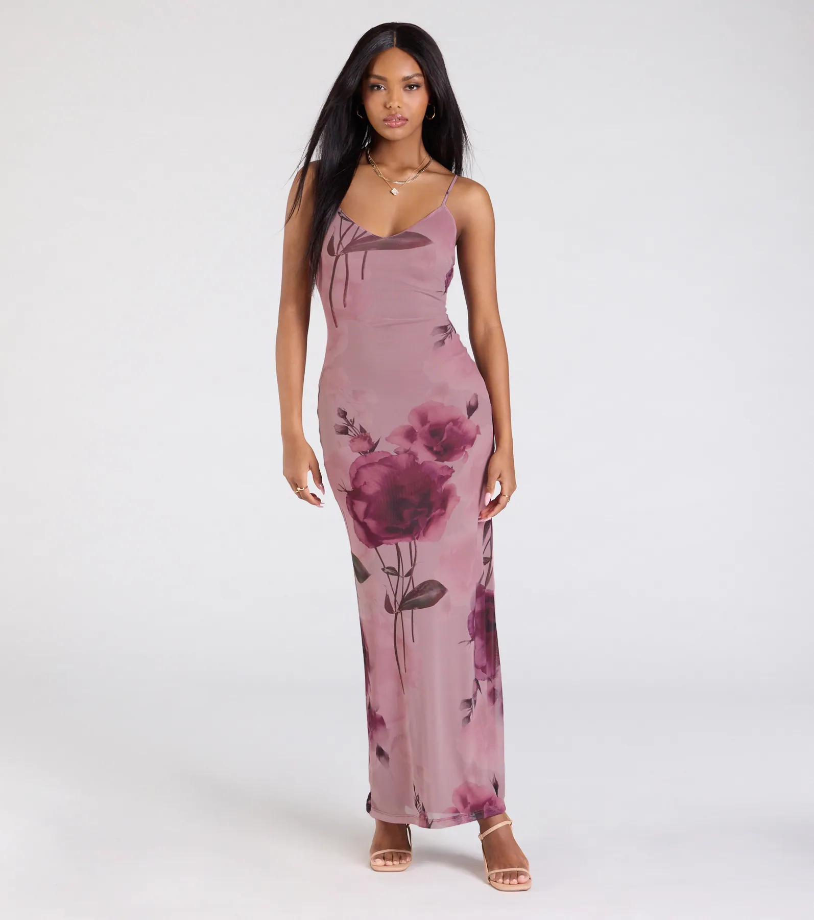 Alluring Vibe Floral Mesh Bodycon Maxi Dress