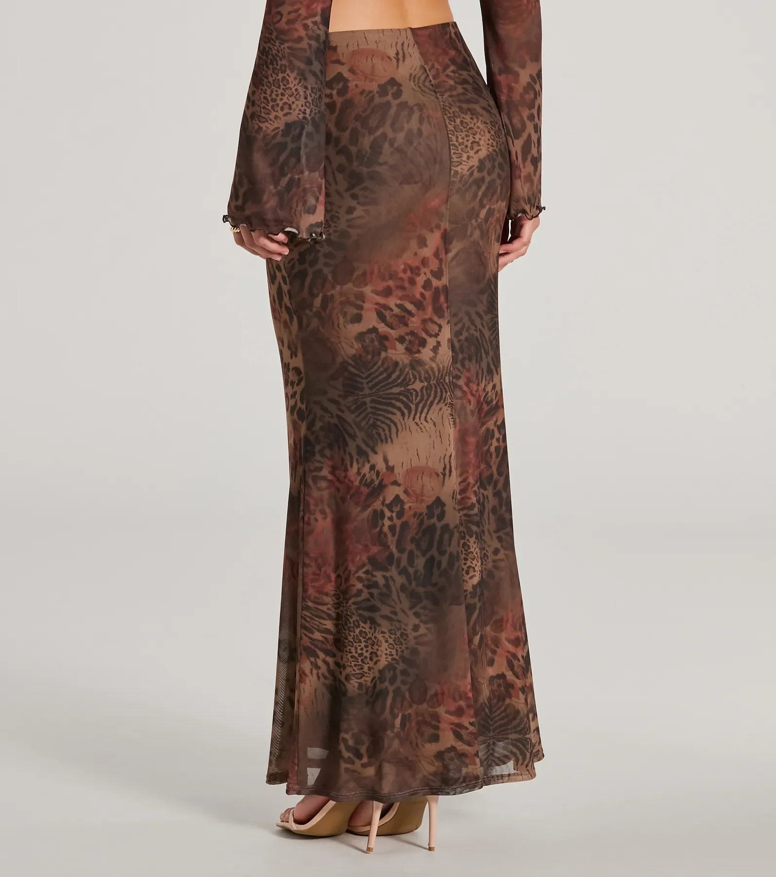 Wildy Sultry High Rise Leopard Floral Maxi Skirt