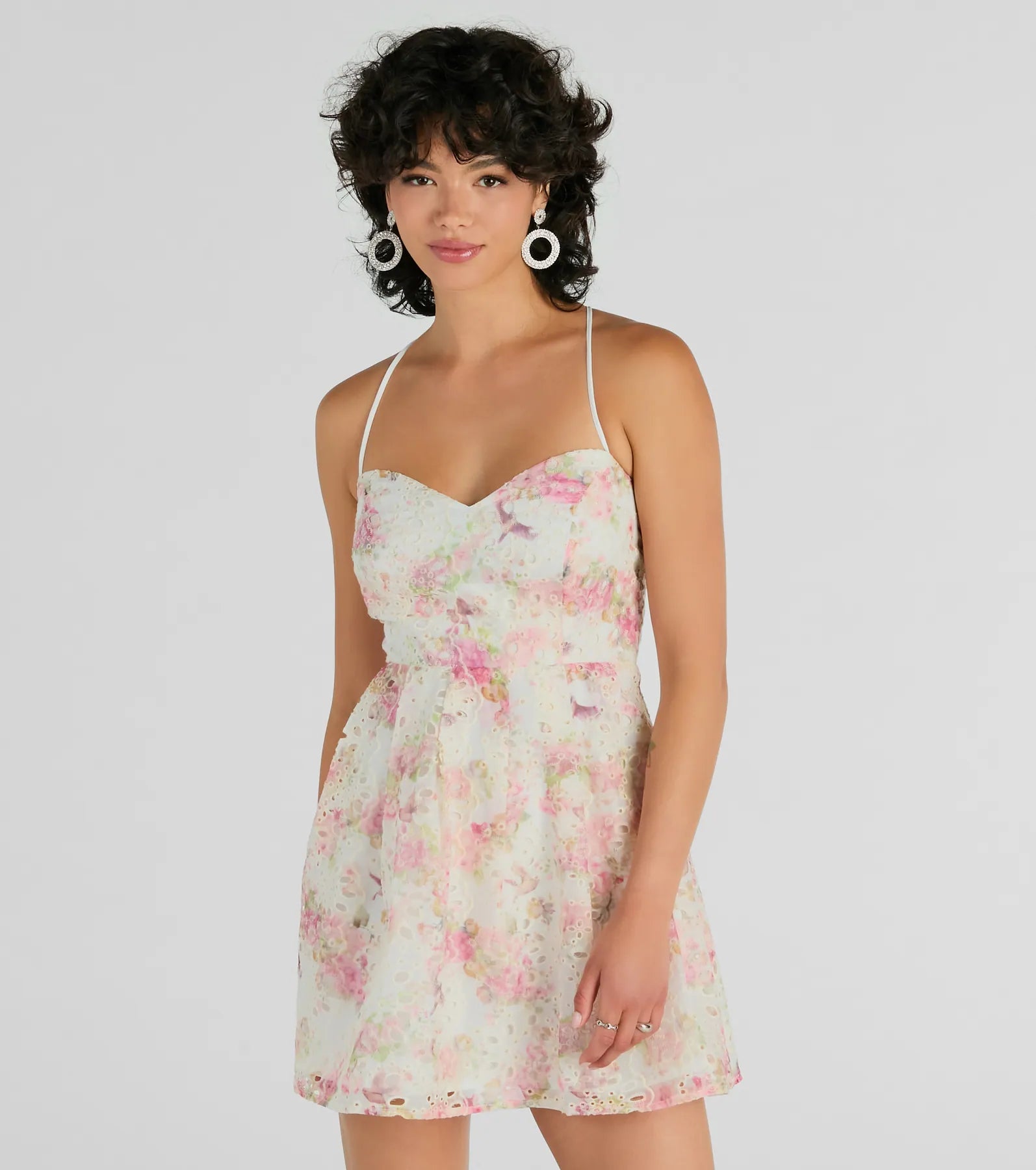 Floral Day Dream Lace Up Eyelet Skater Dress