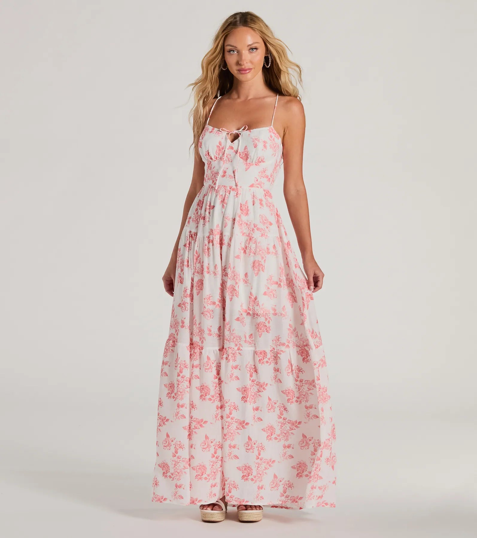 Charming Vibe Tie-Back Flowy Floral Woven Maxi Dress