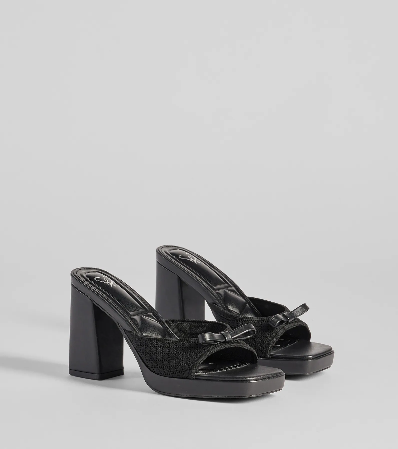 Step into these cute platform mules to elevate your look this weekend! The heels are designed with a knit strap. an adorable bow inset. and a comfortable block heel. Pair with a handbag.