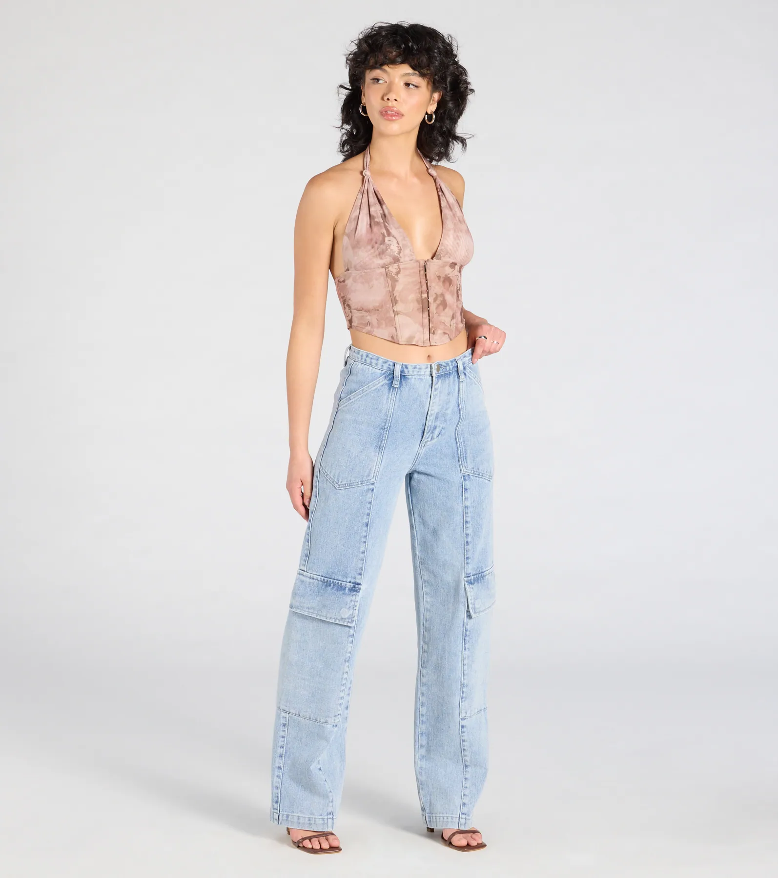 Fate has led you to this flirty corset crop top! The perfect partner with your favorite jeans. this halter top is designed to stand out with an abstract print and partially open back.