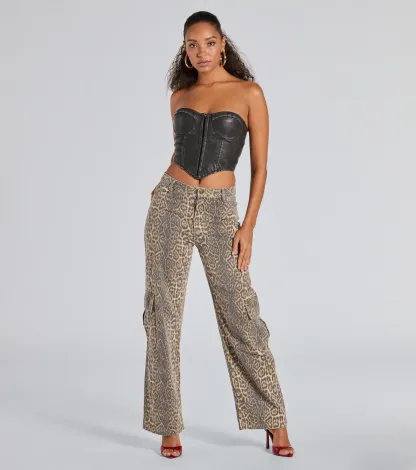 It-Girl Factor Leopard Print Cargo Denim Pants