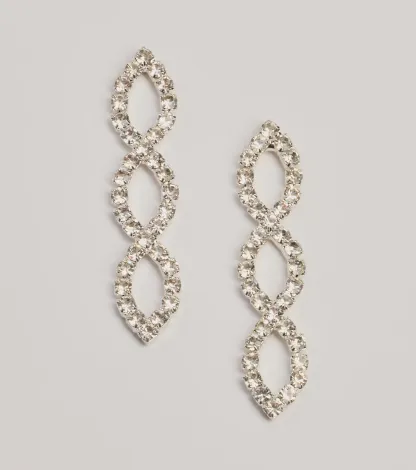 Create a luxe moment with earrings that bring radiance. The earrings feature an infinity drop design and mini rhinestones. Complete look with a lace midi dress for the perfect date night look!
